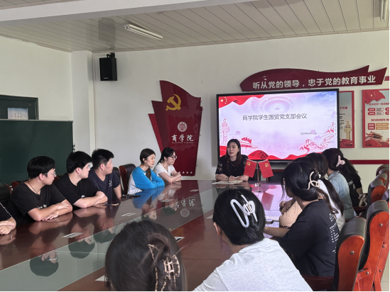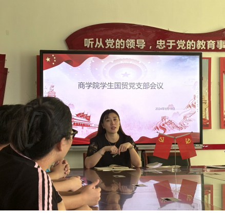 2024年9月19日,无锡太湖学院商学院学生国贸党支部在学院党员活动室成功召开了新学期党支部会议。此次会议于今天下午两点准时开始,由党支部书记闵娟娟老师主持,旨在为新一批中共预备党员讲解入党事宜和步骤,并就当前国内外形势阐述党员应具备的精神。